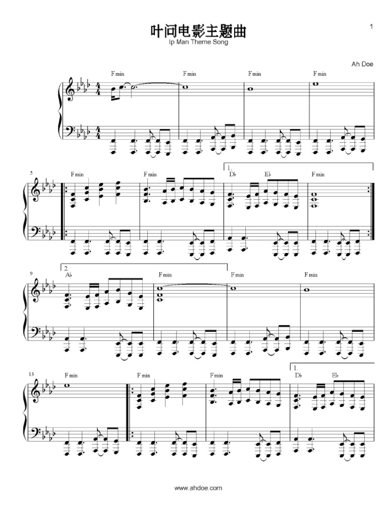 Ip Man Theme Song Complete Piano Sheet